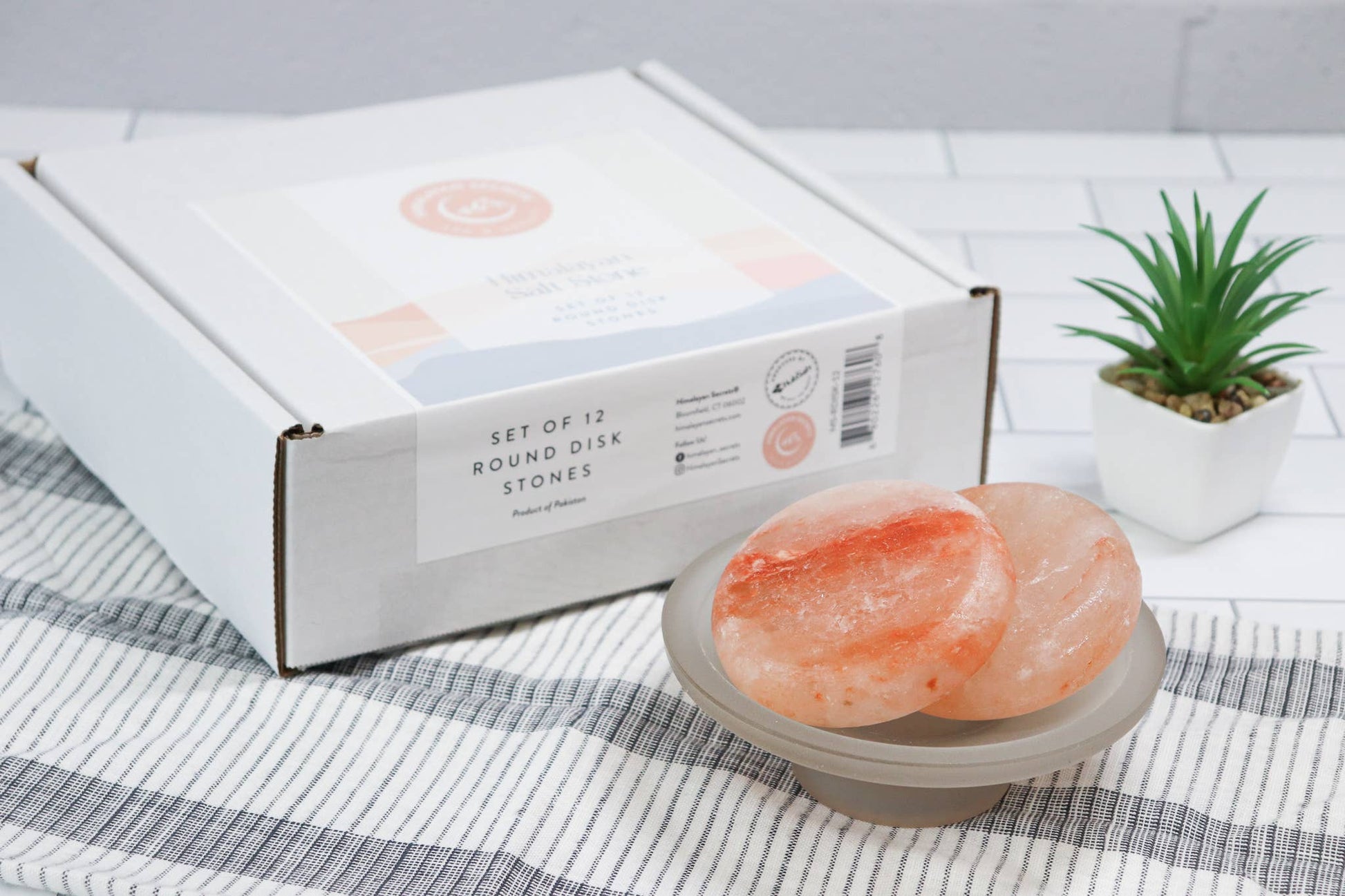 Himalayan Salt Round Disk Shaped Massage Stone set by Himalayan Secrets© - the perfect way to indulge in a soothing and rejuvenating massage experience! Crafted from 100% natural Himalayan salt, these massage disks offer an array of health benefits, including reducing muscle tension and promoting healthy blood circulation.