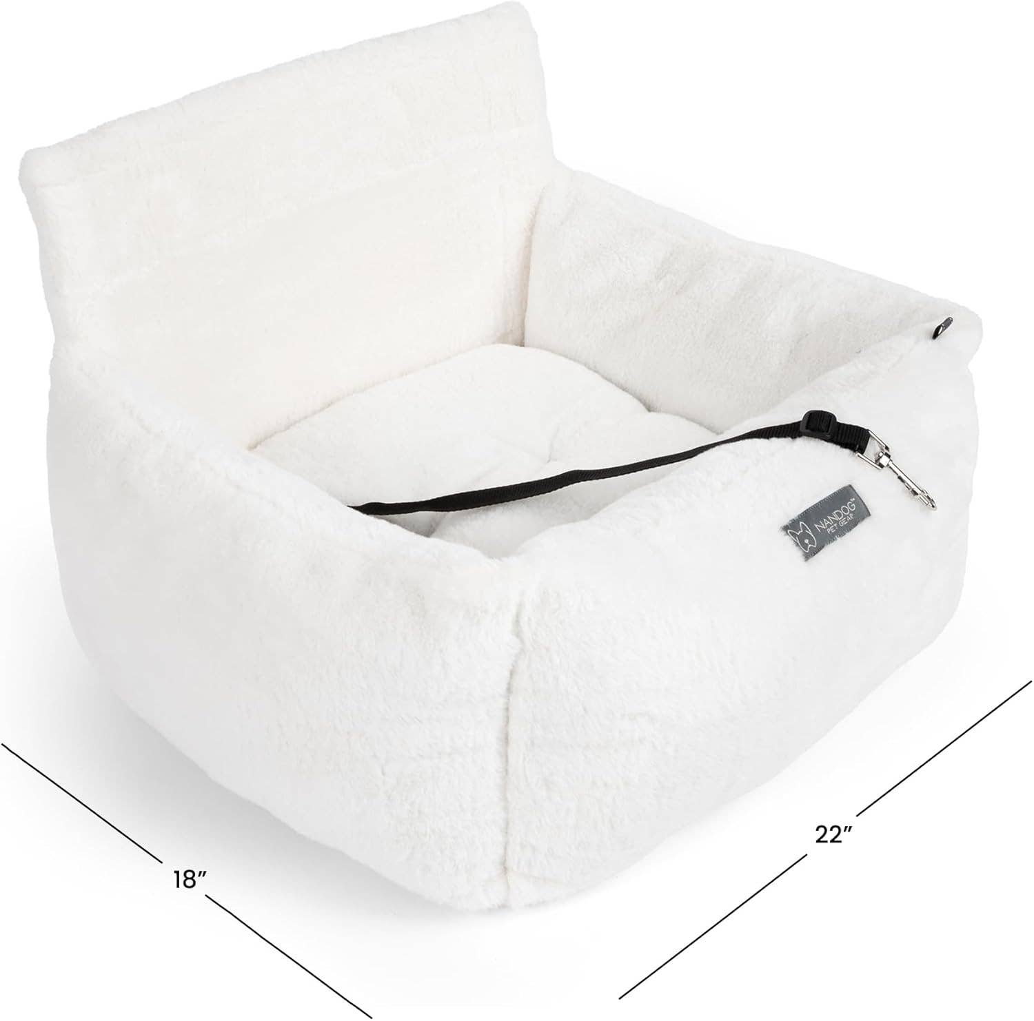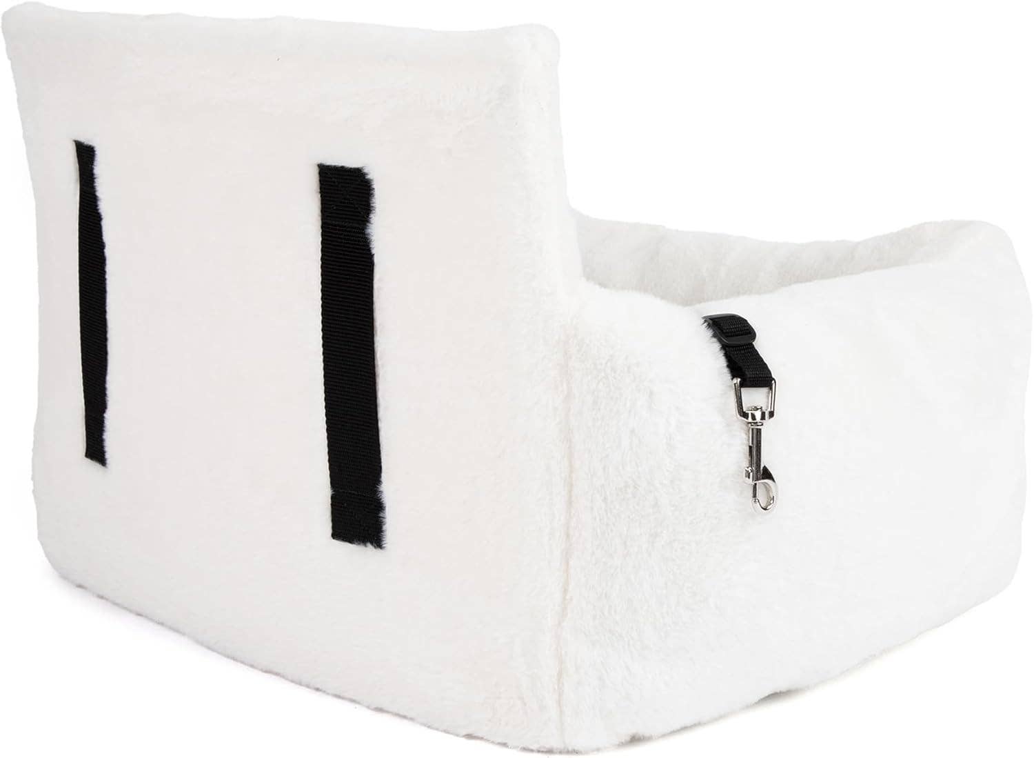 Features Safety Hook and Seat Belt Straps, Soft and cuddly fabric material, filled with natural poly fiber. Increase the safety of your dog while in the car. *This product must be used with a harness Sizing Approximately 18" x 16"
