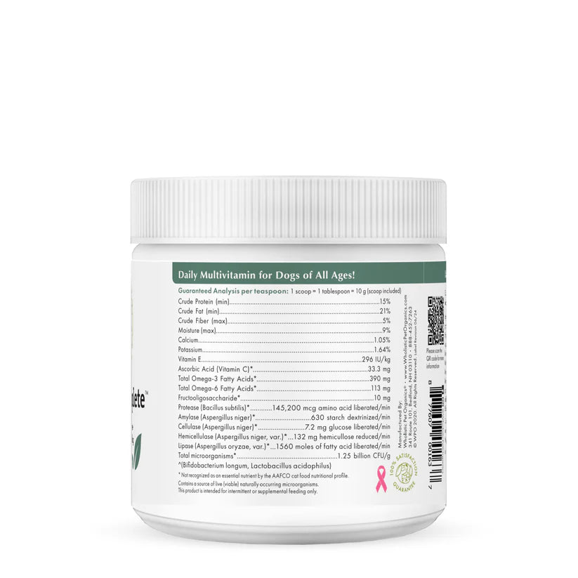 Puppies, just like us, can only reach their genetic potential if their diet delivers maximum nutrition. Most commercial puppy foods fall short because they are not formulated to meet every individual puppy's needs. To enjoy robust health, your puppy should receive a high-quality vitamin/mineral supplement alongside essential fatty acids, digestive enzymes, and other nutrients. Puppy Complete™ accomplishes these goals with one easy-to-use complete supplement.