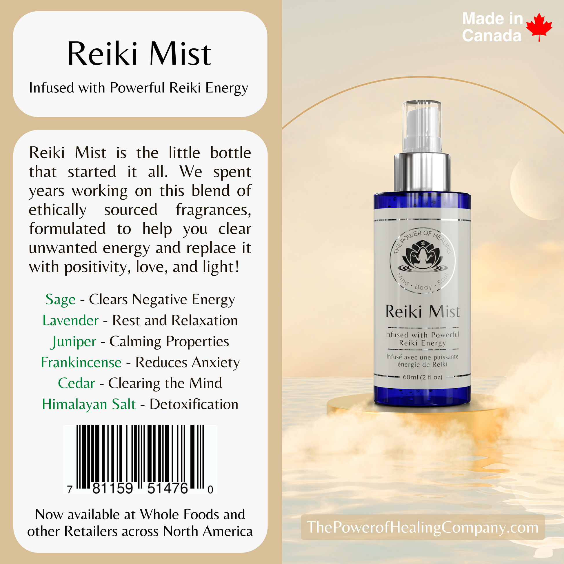 Reiki Mist is the little bottle that started it all. We spent years working on this blend of ethically sourced fragrances, formulated to help you clear unwanted energy and replace it with positivity, love, and light! Each bottle is blessed by Reiki Master Daxa Chauhan in Toronto, Canada